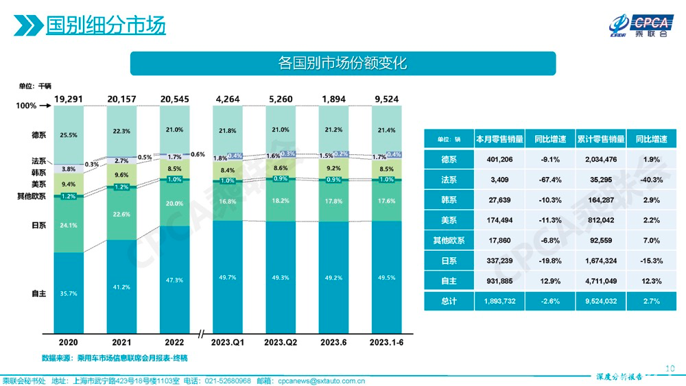 同理,对于上半年销量,合资品牌车企并没有在这场半年度“战役”中占到任何便宜。反而是头些年不被消费者“看好”的中国品牌,经过多年的发展,正在逐步侵蚀海外品牌,上半年市场份额已经高达49.5%。