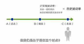 我们站在现在时点B回顾过去,从A到B这段时间的历史行情我们是知道的,但是基于过去一段时间,标的价格的历史数据计算出来的波动率,就是历史波动率。历史波动率用来反映标的价格,在过去一段时间的波动水平。