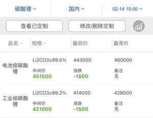 根据上海钢联3月2日发布的数据显示,电池级碳酸锂目前的均价报38.25万元/吨。从去年11月碳酸锂价格飙涨到60万元/吨至今,仅仅只过去了三个月时间,碳酸锂价格的跌幅已经超过了30%。