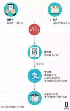 假设你在商家那里扫码支付1000元,你得付出3.8元的手续费。