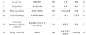 第10名是缪克神安巴尼,他所经营的公司是印度信诚工业集团,总的财富价值是1,004亿美元,今年年龄64岁。
