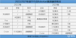 据《赛博汽车》不完全统计,去年前11个月全球Robotaxi赛道的融资金额大幅下降。数据显示,2022年1-11月,全球Robotaxi玩家累计披露的融资总额,超过122亿元。这个数据在前年同期为252亿元。且去年Robotaxi领域的平均单笔融资金额,也远小于前年同期。