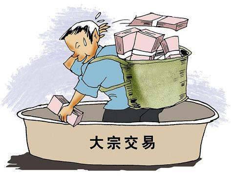 大宗交易,又称为大宗买卖,是指达到规定的最低限额的证券单笔买卖申报,买卖双方经过协议达成一致并经交易所确定成交的证券交易。具体来说,各个交易所在它的交易制度中或者在它的大宗交易制度中都对大宗交易有明确的界定,而且各不相同。