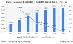 2013-2019年期间我国融资租赁行业市场规模总体呈波动增长态势。据中国租赁联盟数据,截至2019年12月底,全国融资租赁合同余额约为66540亿元,比2018年底的66500亿元增加约40亿元。