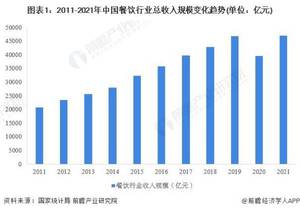 2021年,随着新冠疫情逐步得到控制,我国餐饮行业已恢复至疫情前水平,行业收入增幅再次领先社会消费品零售总额增幅达6.1个百分点,总收入规模回升至46895亿元。