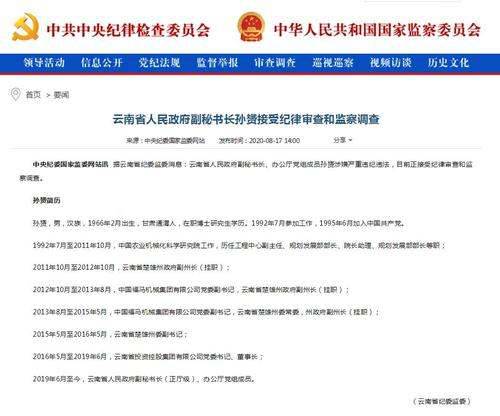 据云南省纪委监委消息:云南省人民政府副秘书长、办公厅党组成员孙赟涉嫌严重违纪违法,目前正接受纪律审查和监察调查。孙赟,男,1966年2月出生,甘肃通渭人,在职博士研究生学历。1992年7月参加工作,