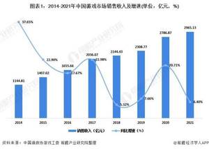 2021年,我国游戏市场销售收入2965.13亿元,较2020年增长了178.26亿元,同比增长6.4%。2021年随着疫情缓解,宅经济影响减弱,我国游戏市场销售收入增速有所下降。