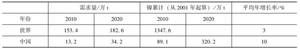 表1-2-3 中国及世界镍的开采量、产量和消费量(金属量/万t)