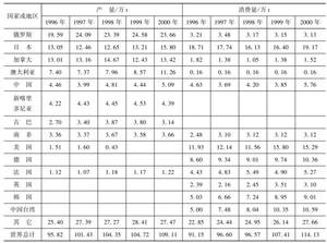 表1-2-4 世界各国精镍产量及镍消费量表(金属量/万t)