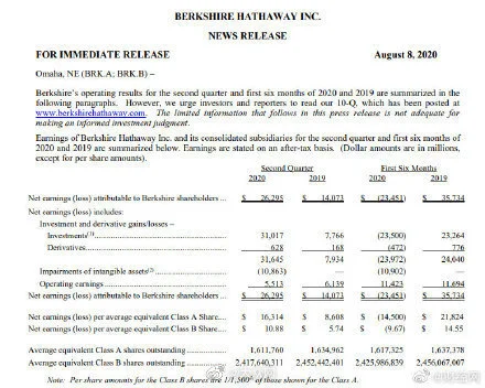 伯克希尔第二季度回购了超过46亿美元的B类股票和大约4.866亿美元的A类股票。该回购是该集团在巴菲特历史上近2019年四分之一的最高回购数量。第四季度翻了一番,达到22亿美元,相当于2019年的年度赎回支出。 巴菲特表示,在回购方面,他希望伯克希尔哈撒韦的股票数量会随着时间的流逝而减少。如果股价与其内在价值之间的折让扩大,则赎回将变得更加活跃,但这是为了支撑股价。巴菲特在5月初的一次股东大会上表示,回购的吸引力不如从前,但最近的数据改变了他的想法。