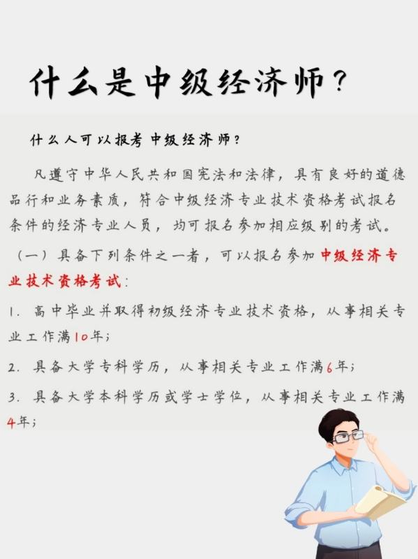 中级经济师就是从事经济方面工作的人,它是一个中级职称,是用来给您所在单位聘用您并给您相关待遇的依据。经济师证书效力日益凸显,报考经济师的人数也逐渐增多,建议大家提早备考,越早考取证书就将越处于有利的位置。