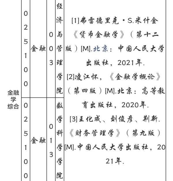 二、中国人民大学金融专硕考研参考书目是什么?