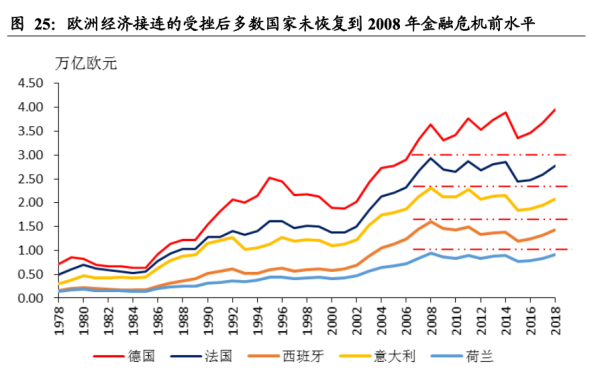 有行业人士直言,欧洲经济在疫情前接连遭遇2008年金融危机和2012年的欧债危机的冲击,经济增长接连遭遇打击。欧洲主要国家除德国外经济规模均未恢复到2008年的水平。此次疫情冲击后,政府大规模的债务积累,居民和企业资产负债表有待修复,欧洲或将进一步陷入低增长泥潭。为应对疫情所积累的大量债务也将进一步加重整个欧洲的债务负担,让欧洲经济继续“负重”前行。