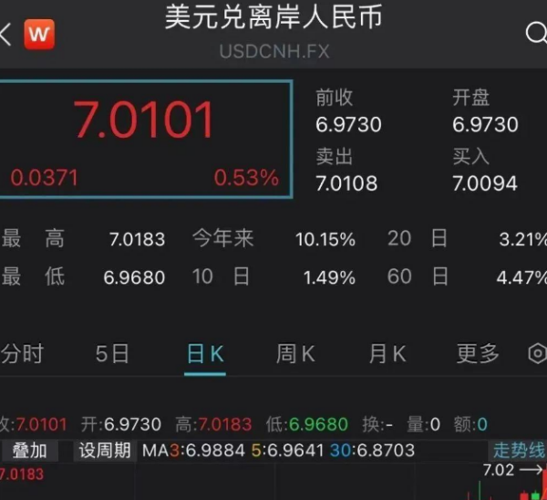 关于这个数字是一直在明显的贬值的,如果没有贬到7的话,我觉得还算是可以的,那还好一点。这个数字应该是刷新了今年的历史记录吧,因为这个汇率不断的走低,那么对于很多行业来说都是非常不利的。如果克制在这个数字之内没有继续提升的话,我觉得外贸企业或许能够度过难关。