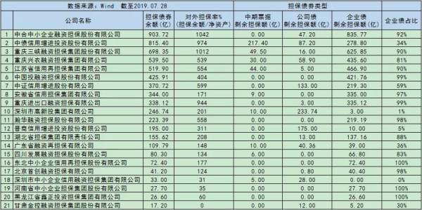 历史上为债券提供过担保服务的融资性担保公司超过60家,截至2018年末,存在债券担保在保余额的融资性担保公司有36家,截至2019年7月底,担保债券余额在10亿以上的担保公司有21家,前十大担保机构的市场占有率超过80%,表明担保公司直接融资担保业务集中度越来越高,对担保公司的要求越来越高。