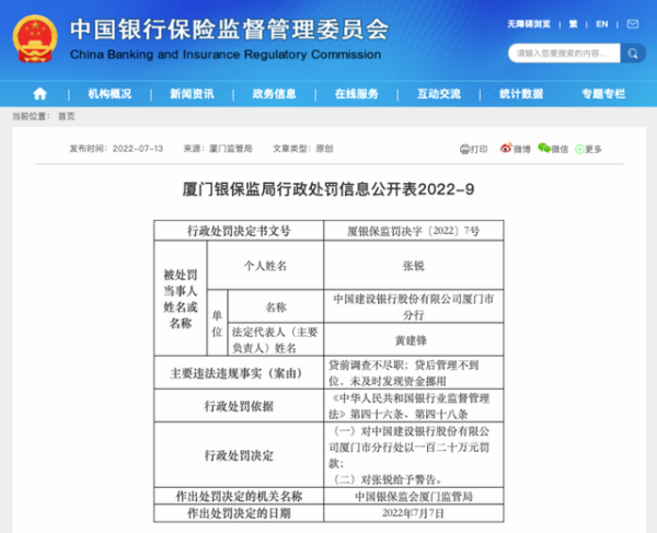 国家给我们的生活提供大力的保障,也是希望人们能够过上一个幸福美满的生活。同时他们也可以通过努力完成自己的人生目标,这也是一个十分不错的事情。所以说我们的生活变得越来越好了,这是国家的支持,也是我们自己努力的成果,同时也离不开社会的发展和经济的提高。很多人会选择将自己的钱财存放在银行里,那么这会有一个非常好的保障。那么贷前贷后均违规,建行厦门市分行被罚120万,这个消息公布之后引起了无数网友的热议。那么有人也会产生疑问,这对银行的经营会有哪些影响呢?下面小编来和大家说一说。
