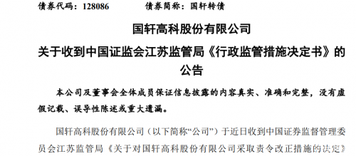 7月14日晚,国轩高科发布公告,由于存在违规行为,江苏监管局要求其采取责令改正措施。