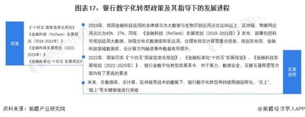 我国银行业发展的未来方向主要为数字化转型驱动单位时间业务完成量快速上升、投资理财产品的精准营销以及与各行业互联互通、信息共享带来的盈利能力、风控能力的大幅提升。近年来,我国颁布多项金融科技、数字化转型方面的政策文件,推进银行进行数字化转型,同时进一步增强银行服务实体经济的能力。