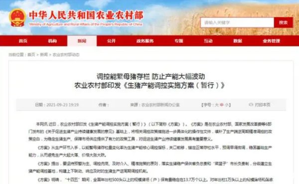 这里就不得不提到一个官方出台的方案——《生猪产能调控实施方案(暂行)》(以下简称《方案》)。