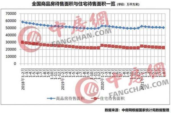 库存方面,8月末商品房待售面积50580万平方米,比7月末减少284万平方米。其中,住宅待售面积减少257万平方米,办公楼待售面积减少13万平方米,商业营业用房待售面积增加10万平方米。