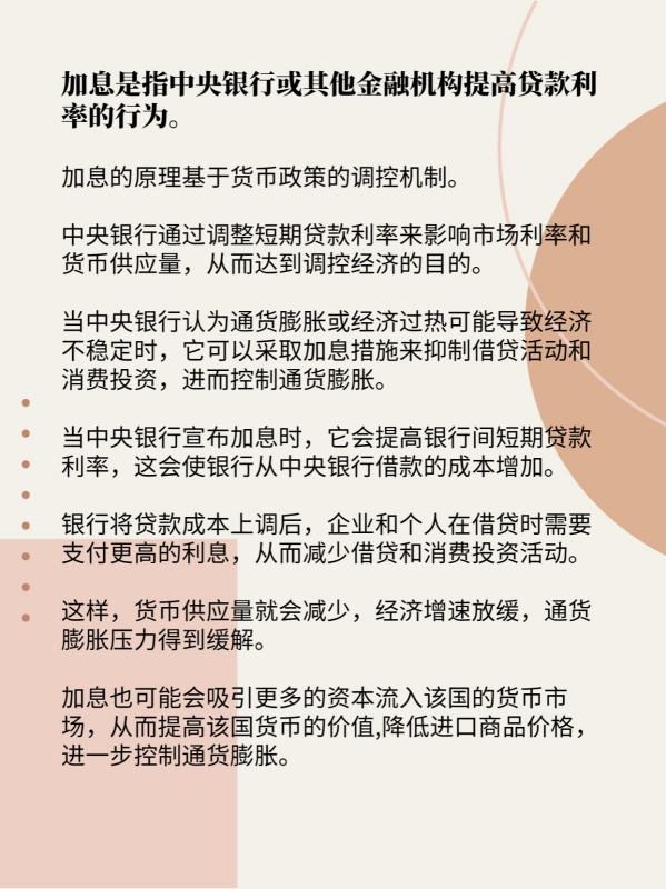 加息是指中央银行或其他金融机构提高贷款利率的行为。