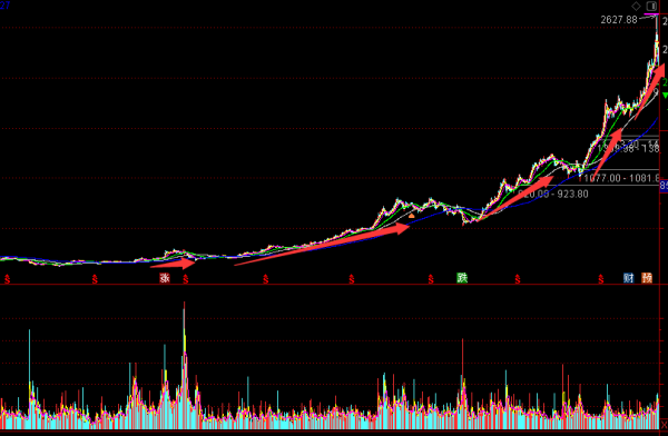 贵州茅台近期只用7个交易日的下跌,就把前期近两个月的涨幅全部吞并了,宣告前面两个月的涨幅已经没了。