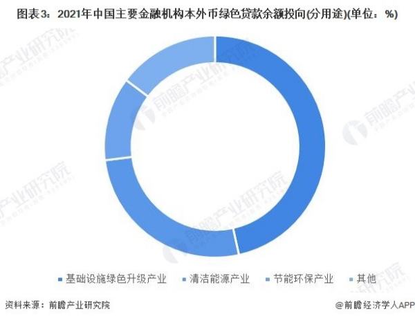 我国绿色信贷分用途来看,47%的绿色贷款用于基础设施绿色升级产业,26%和12%的绿色贷款分比用于清洁能源和节能环保产业。