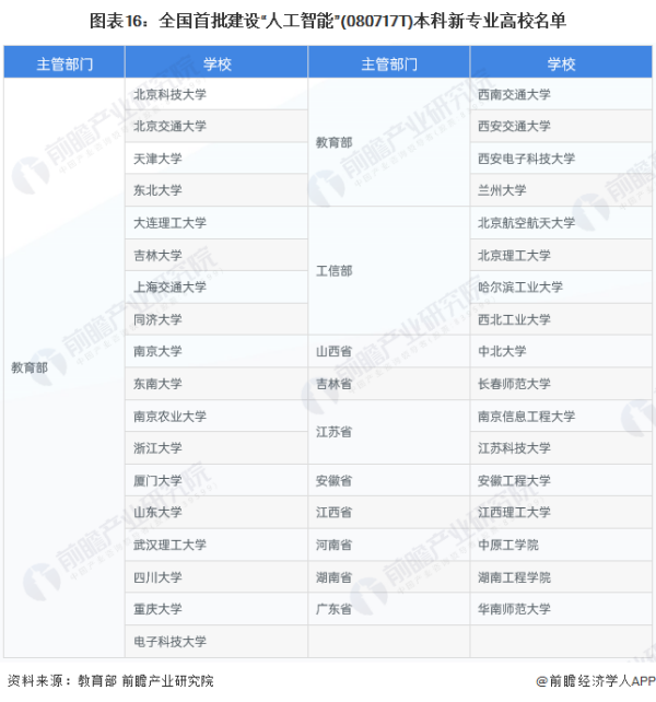 2019年,教育部印发了《教育部关于公布2018年度普通高等学校本科专业备案和审批结果的通知》,全国共有35所高校获首批建设“人工智能”本科专业资格。