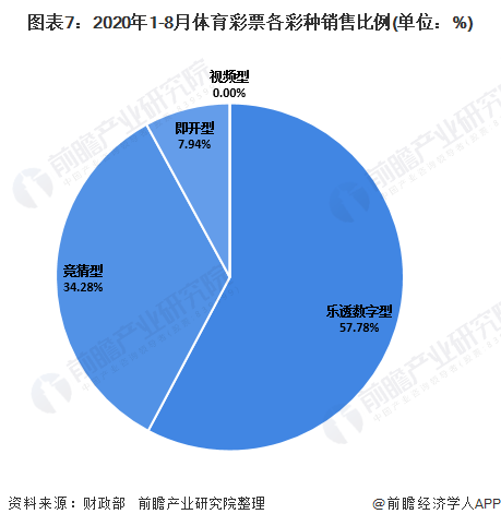 2020年1-8月,体育彩票销量占比最高的是乐透数字型,占比达到57.78%。