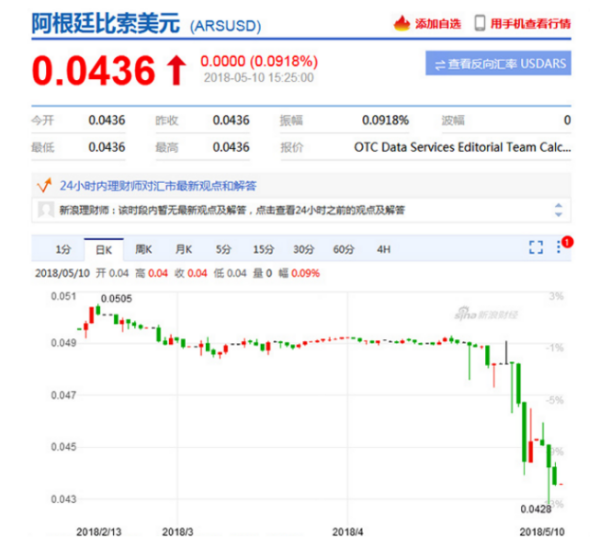 自去年12月,阿根廷比索一直承受贬值压力,比索兑美元汇率累计跌幅一度达到15%以上。