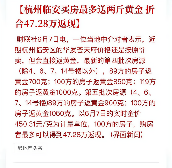 杭州有楼盘买房最多送两斤黄金,折合 47.28 万返现,未来开发商「内卷」会成常态吗?