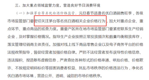 另外,据我说知,不仅茅台股票所在的上交所,茅台酒流通的监管部门国家市场监督管理总局,也对茅台酒的价格加强监管。国家市场监管总局网站24日晚发布《关于加强2021年元旦春节期间市场价格监管的通知》,其中提到,加强茅台等名优白酒价格监管。严查各种形式的价格串通、哄抬价格、价格欺诈等损害消费者权益、扰乱市场秩序的价格违法行为。
