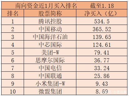 数据显示,南向资金除了大举涌入中国移动、中国联通、中芯国际等绩优红筹股,还大举加仓腾讯、京东等新经济板块港股。