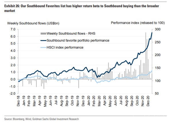 “此前我们还担心,在经历去年大涨后,不少新经济板块中概股估值已经偏高。现在看起来,我们完全低估了南向资金涌入所带来的估值更上一层楼的效应。”张刚说。