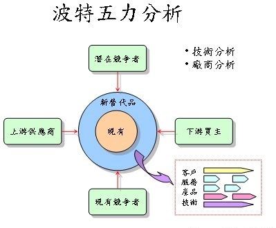 这五种力量综合起来影响着产业的吸引力以及现有企业的竞争战略决策。五种力量分别为同行业内现有竞争者的竞争能力、