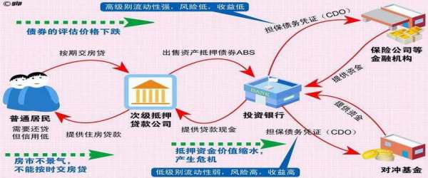 次级抵押贷款是指一些贷款机构,向信用程度较差和收入不高的借款人提供的贷款。近年美国等国家放松购房信贷标准(不用付首期,不用收入证明,也不计较抵押单位的质素等),形成次级房贷市场。次级房屋信贷经过贷款机构及华尔街用财务工程方法加以估算、组合、包装,就以票据或证券产品形式,在抵押二级市场上出卖、用高息吸引其它金融机构和对冲基金购买。