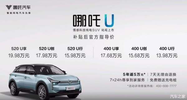 补贴后售13.98万元起哪吒U上市