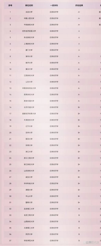 即从A+到C-的等级高低,等级越高学科建设水平越高、相反则越弱,所以建议考生、参考应用经济学评估等级来选择大学,等级越高就业越好——