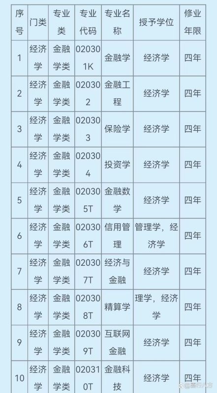 按照教育部2022年最新本科专业目录、金融学类专业属于经济学门类、共有10个具体专业,其中、主要是金融学和金融工程两个专业。金融学专业偏宏观、偏理论;金融工程专业偏应用、偏技术,理论能力强、建议选择金融学专业;实践能力强、建议选择金融工程专业。
