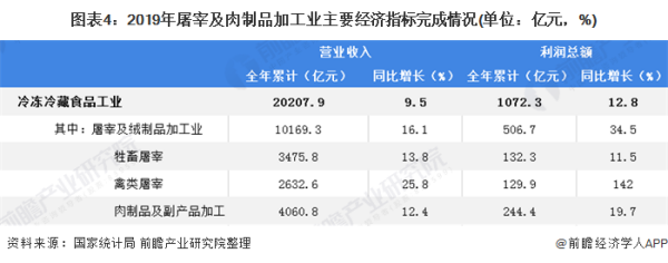 生产冷鲜、冷藏肉2817.5万吨,同比增长0.9%。2019年全行业实现利润506.7亿元,同比增长34.5%。其中:牲畜屠宰、禽类屠宰、肉制品及副产品加工业实现利润同比分别增长11.5%、142.0%、19.7%。