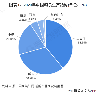 我国是全球粮食生产大国,2020年粮食产量约占全世界粮食产量的24%,粮食供给较为充足。2020年我国全年粮食产量则达到66949.20万吨,同比增长0.85%。 从我国粮食生产结构来看,2020年我国主要以玉米、稻谷和小麦等基础粮食作物为主,三类谷物粮食作物产量合计占2020年全年粮食产量的90%以上。而豆类产品的产量占比仅占3.42%,约2287万吨。