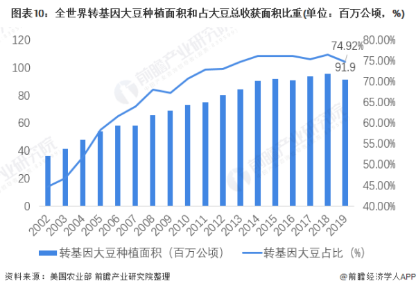 我国大豆产量不足的主要原因并不是种植面积不够,而是由于对转基因技术的限制。由于转基因农作物在长期食用后对人身体的影响存在不确定性,因此我国对于转基因作物有着较为严苛的管控。必须先申请安全证书,随后通过审定和获得生产许可证才可以进入商业化。而我国对于生物安全证书有着较为严苛的获批流程,且时间周期较长,因此我国目前还没有允许可量产化的转基因大豆品种。虽然转基因技术在我国仍有所限制,但在全球已经广泛应用,尤其是广泛应用在一般粮食作物大豆中。2019年全世界转基因大豆种植面积达9190万公顷,占当年全世界大豆总收获面积的74.92%。