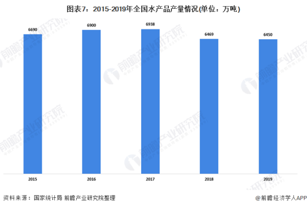 在国家“以养殖为主,养殖、捕捞、养护和加工全面发展中国特色渔业”产业政策引导下,2019年全国水产品加工业稳定发展。据国家统计局数据,2019年全国水产品产量6450万吨,其中养殖水产品产量5050万吨,同比增长1.0%,捕捞水产品产量1400万吨,同比下降5.0%。水产品存量充足,满足市场供应。有效改善食物结构,提高人民营养水平。