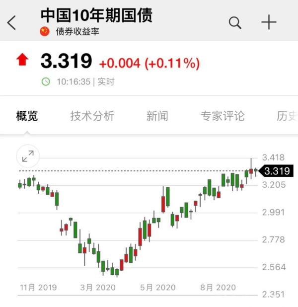 那么我们就来看看,为什么我们手头的债券基金最近跌得比较多?首先看市场利率,市场利率我们可以直接看10年期国债的收益率。利率上涨,债券价格自然就开始下跌了,这就是债券基金都表现不好的主要原因。