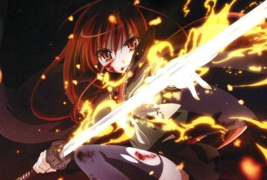 还有很多使用刀的角色,比如《灼眼的夏娜》里的夏娜,她的宝刀就是贽殿遮那,这是一把浑身带着火焰的刀,非常具有杀伤力。还有立华奏的音速手刃,可以用来攻击和格挡,也是一个非常厉害的武器。
