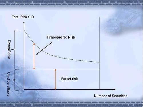 于是他的投资完全分散化(diversification)了,他将不承担任何可分散风险。但是,由于经济与股票市场变化的一致性,投资者将承担不可分散风险。于是投资者的预期回报高于无风险利率。
