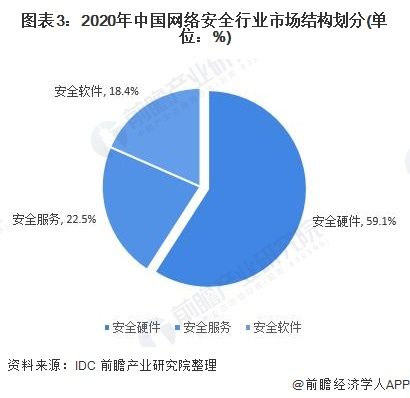 IDC表示,2020年,安全硬件在中国整体网络安全支出中将继续占据绝对主导地位,占比高达59.1%,安全软件和安全服务支出比例分别为18.4%和22.5%。