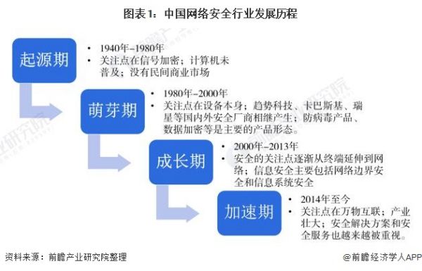 目前网络安全正处于网络空间安全时代的加速期:2014年中央网络安全和信息化领导小组成立后,网络安全法、等保2.0等政策不断出台,网络安全上升为国家战略。