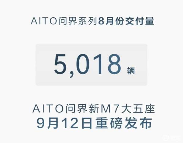 这个8月,AITO问界系列共交付新车5018辆。从数字上来看算不上高,不过很明显已经有了好转的势头。