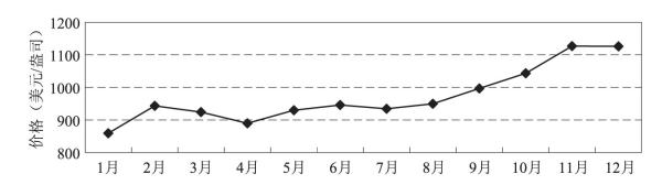 2009年,国际市场黄金价格平均为969.91美元/盎司,比上年上升11.23%。黄金价格自2001年以来一直直线上升,尤其是在2006年、2007年和2008年黄金价格升势凌厉(图4)。2009年,黄金价格继续走强。2009年2月,现货黄金价格突破1000美元/盎司。2009年9月,连续6个交易日黄金价格暴涨,突破1000美元/盎司大关。在2009年10月8日创历史最高纪录1022美元/盎司,而且价格继续上扬。2009年12月3日,现货黄金价格创造出新的历史最高纪录,达到1126.60美元/盎司。从2009年1月1日的879.7美元/盎司至2009年12月31日的1096美元/盎司,2009年黄金价格涨幅为24.5%(图5)。